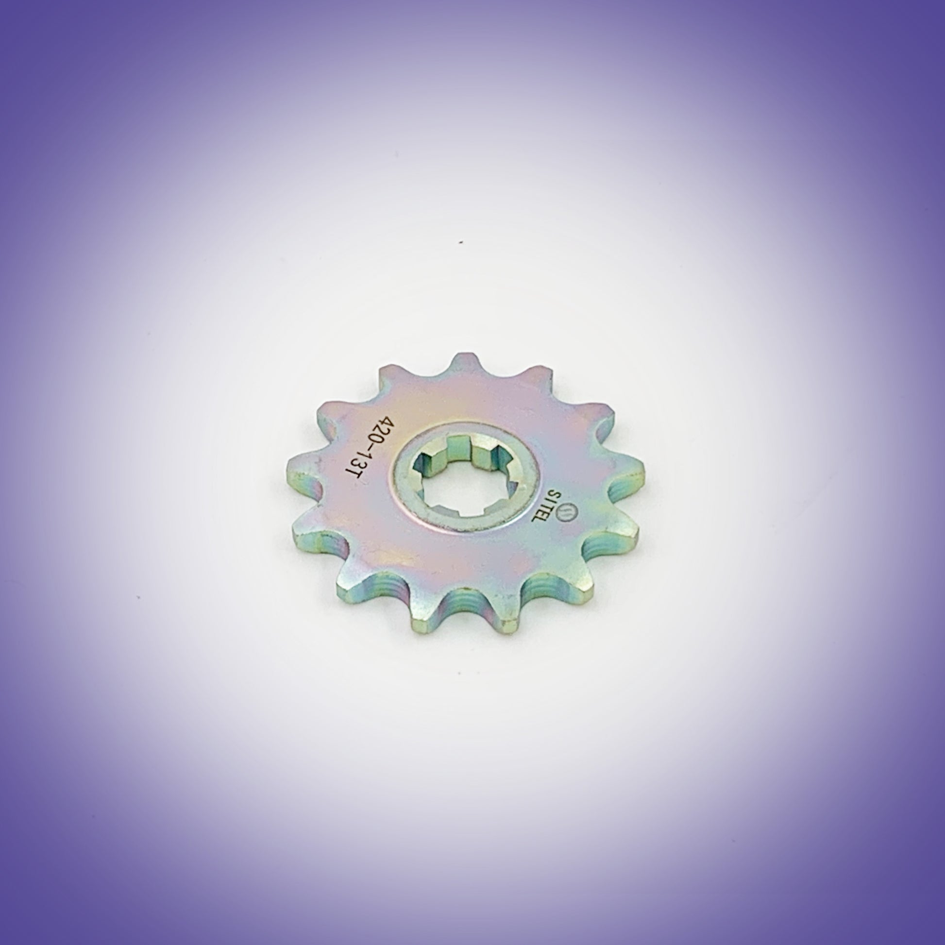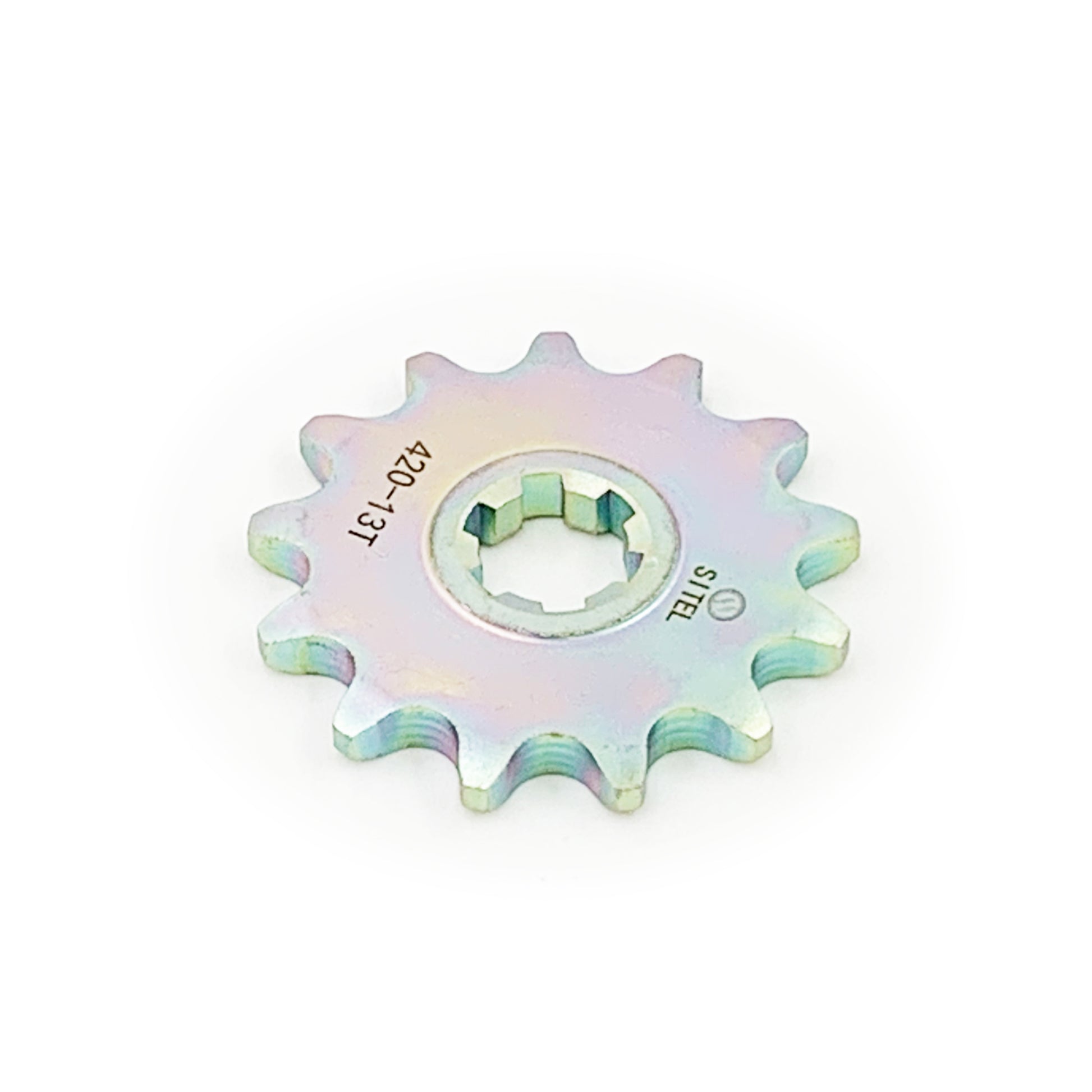 OEM quality 420-13T hardened steel final drive front sprocket is a direct replacement for Rawrr Mantis X. Also fits Talaria Sting MX3 and MX4 models.